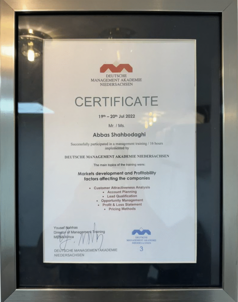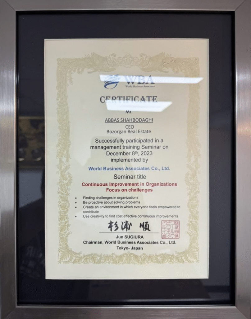 دارای مدرک DBA / MBA ، دکترای مدیریت کسب و کار از کشور آلمان ، دکترای مدیریت کسب و کار از دانشگاه ژاپن ، دکترای مدیریت کسب و کار از دانشگاه اینچئون(Incheon national university) کره جنوبی و چندین مدرک بین المللی املاک و مدیریت کسب و کار و دکترای مدیریت کسب و کار هستم و همچنان در کنار کار به تحصیل در رشته های ذکر شده میپردازم تا علم خود را به روز نگه دارم.